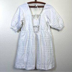 7 For All Mankind White Puff Sleeve Babydoll Dress Size L