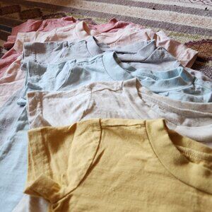 Bundle of seven tees in cute versatile colors: Red, pink, tan, dark gray, like gray, baby blue, yellow. All in excellent condition.