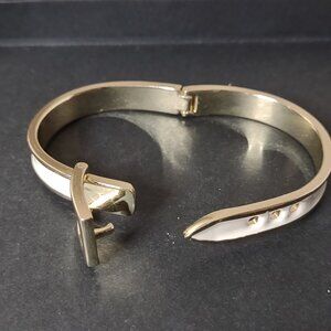 7 Inch White And Gold Tone Belt Buckle Bracelet. Check Out My Closet For Other Great Items!!! Thank You For Considering Making A Purchase.