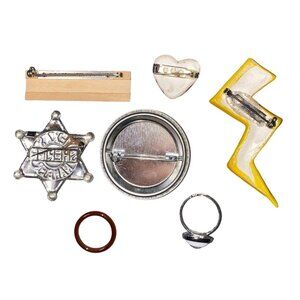 7 Items Brooch Pin Ring Women Heart Badge Eye Lightning Bolt Yellow Red Wood Say