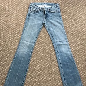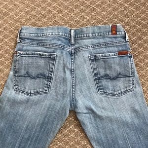 Light wash 7 jeans - small hole in crotch of pants, could easily be sewn to repair. Otherwise in great condition!
