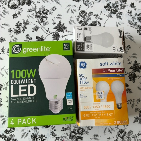 Unused / New, except for Feit single bulb which was only briefly used. Will be carefully packaged for safe shipping.