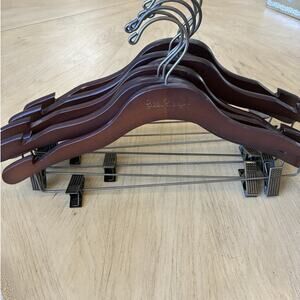 These Lilly Pulitzer clothes hangers are a unique and adorable addition to any home. With a semi-matte brown finish and a solid pattern, these traditional hangers are made of wood and are suitable for hanging coats, jackets, tops, dresses, suits, and skirts. This lot of seven hangers is not only practical for organizing your clothing, but also adds a touch of charm and style to your closet or bedroom decor.