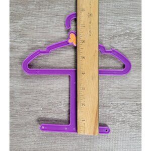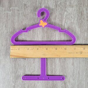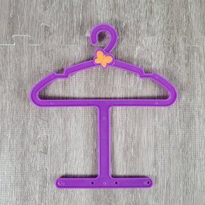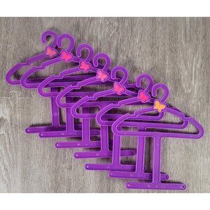 The product is a set of 7 My Life As doll clothes hangers designed for 18-inch dolls. These purple plastic hangers are part of the My Life As franchise and are suitable for everyday use. Perfect for organizing and displaying doll clothes in a closet or playroom, these hangers are ideal for all occasions and are compatible with 18-inch dolls.