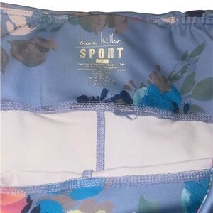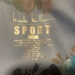 Only worn 1 time. There is a small pocket in the back for your key. No side pockets. Has been washed.