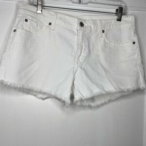 7 OF ALL MANKIND Broken Twill Cut Off White Denim Women's Shorts