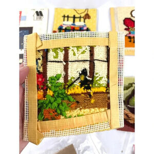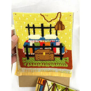 7 PC VTG Paper Calendar & 4 Sunset Designs Needlepoint Yarn Art Embroidered