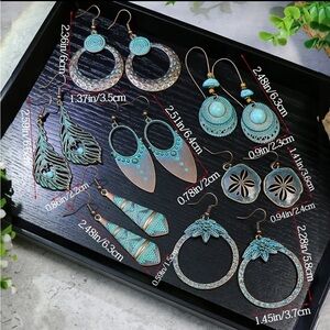 7 Pairs Turquoise Boho Rustic Geometric Earrings