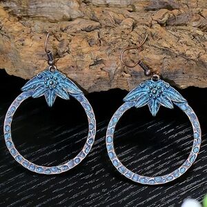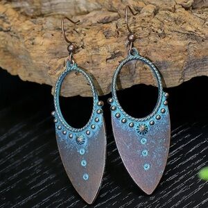 Boho, Bohemian, Tribal, Retro, Rustic, Weathered, Tarnished, Distressed, Western, Southwestern, Festival, Rave, Colorful, Round Earrings, Drop Earrings, Costume Jewelry