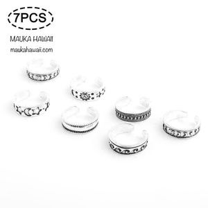 7 Pcs Toe Ring Set Adjustable Toe Rings Mid Rings New & Sealed!