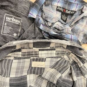 •Wet Seal: gray scale, plaid button up, juniors medium