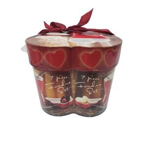 Home Essentials & Beyond 7 Piece Red Heart Fondue Set - Beautiful Lover Set for Chocolate Cheese. Brand new in box, the box does have signs of wear - shipping some of the set outside the original package to ensure safe delivery.