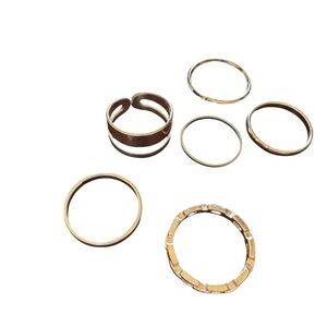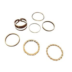 7 piece gold tone stackable ring set. Minimalist varying styles. Multiple sizing and none adjustable except for 1 ring. Wear alone, stacked, mix and match or wear with other rings for a bold statement! NWOT!