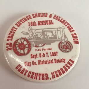 This lot features 6 vintage pinback buttons commemorating the Old Trusty Antique Engine & Collectors Show held in Clay Center, Nebraska.
