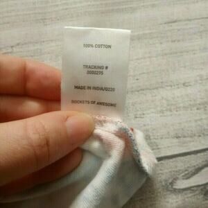 VGUC Rockets of Awesome dress. White with blue and red tie-dye print. Thin straps with ruffles. Elastic waist with pockets. Light wash wear