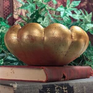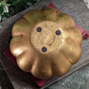 7" Round Vintage Hollywood Regency Gold Gilt Lotus Bowl by Freeman McFarlin USA