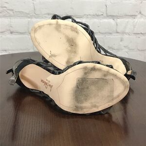 The heels are thin gunmetal grey but are balance and not wobbly to walk in