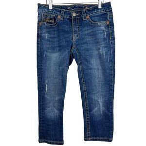 7 Seven Denim Blue Jeans Cropped Womens Size 6 Stretch Thick Stitch Y2K Dark Wash