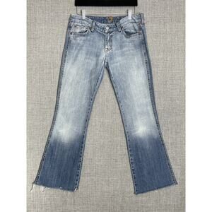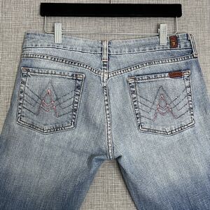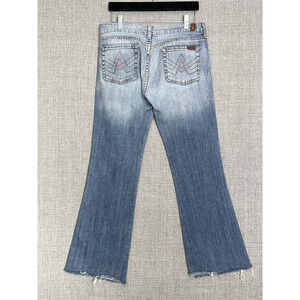 7 Seven For All Mankind Jeans Womens 30 Blue Pink Stitching A Pocket Flare Y2K
