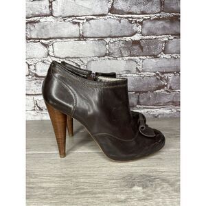 7 Seven for all Mankind Brown Leather Wooden Heel Booties Women Sz 40EU/9.5M US