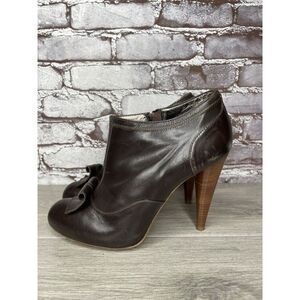 Selling 7 Seven for all Mankind Brown Leather Wooden Heel Booties Women Sz 40EU/9.5M US