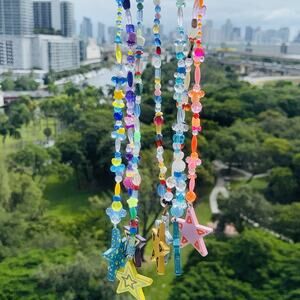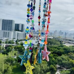 7 Strand Handmade Beaded String Mobile Toran Stars Wall Hangings Rearview Mirror