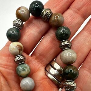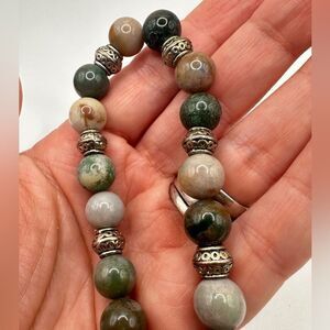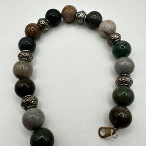 Beautiful 10.5mm polished agate stones and silver toned beads!