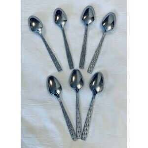7 Tea Spoons Oleg Cassini EKCO Stainless Flatware 6" Japan
