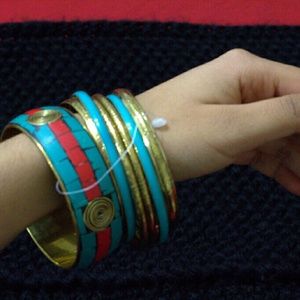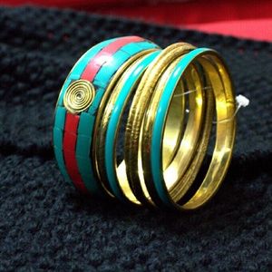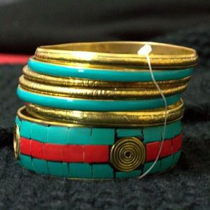 7 Teal & Gold bangles (NEW)