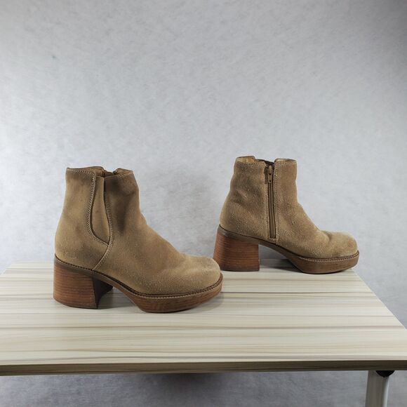 Size 7 Vintage Somethin Else by Skechers Suede Booties with chunky heel and platform, side zip and elastic goring. Suede shows some soiling and wear, perfectly broken in! Measurements in photos.