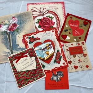 7 Vintage 1950s era Valentines Day Cards Rust Craft Hallmark Wishing Well