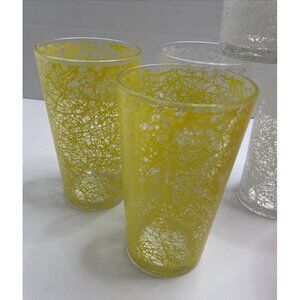7 Vintage 1960s Hazel Atlas 5" Spaghetti String Tumblers White Yellow Orange NEW