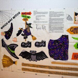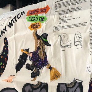 🛒 $7 - Vintage Fabric DIY Material - 1 yard Witch Wall hanging Panel #16