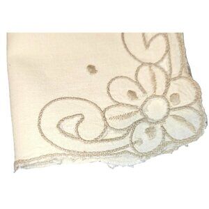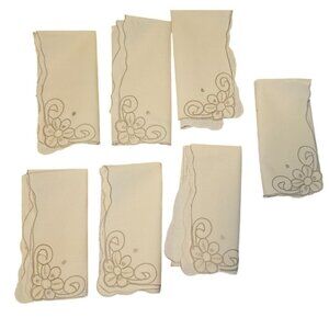 7 Vintage Napkins Embroidered Floral Beige Cloth Scalloped Edges 12x12"