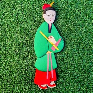 7 Vintage Silk Art Asian Traditional Dress Chinese 1970s Hanging Decoration Set