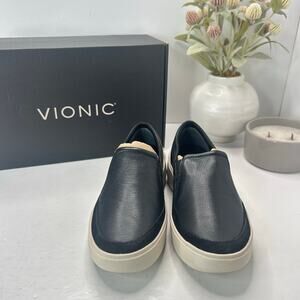 7 Vionic Kearny Platform Leather Slip-On Sneaker Loafer Black Women 5M preloved