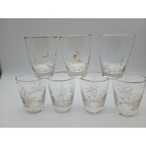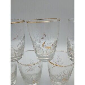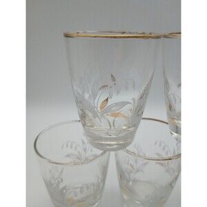 No chips cracks crazing or discolorations. All gold rims have some level of wear. One glass has gold leaves worn down.