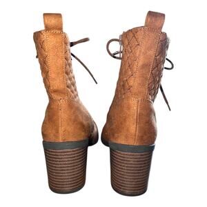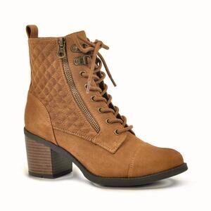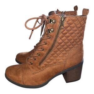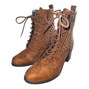 7 White Mountain DORSETT Quilted Grunge LaceUp Combat Boots Tan 2” Block Heeled
