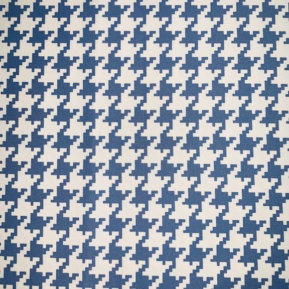 The fabric features a modern blue & eggshell-white houndstooth pattern. Made from premium-cotton fabric that is smooth, medium-weight & great to work with. The perfect fabric for bedding, cushions, drapery, pillows, slipcovers, table coverings, upholstery, window treatments & much more!