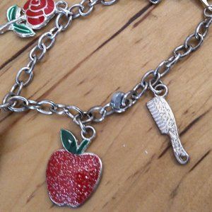 7" big girl Childs Sleeping Beauty charm bracelet apple comb heels