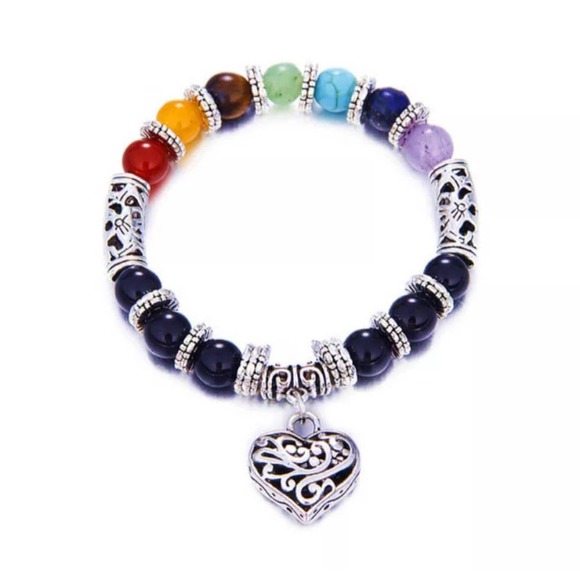 7 Chakra Healing Heart Charm Bracelet Men Women Natural Stone Yoga Jewelry