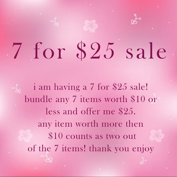DO NOT BUY JUST FOR ADVERTISING PURPOSES!!! Many of the items in my closet are worth less then $10! pick out seven of your favorites and put them in a bundle offer me $25 and i will accept!! thank you so much enjoy! 💕 look for the “🍒part of the 7 for $25 sale” to know what’s a part of the deal!
