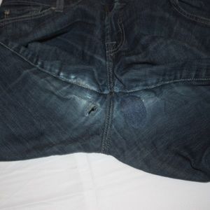 Please see all pictures - there is pulling and signs of wear in inner thigh area - note hole and patch