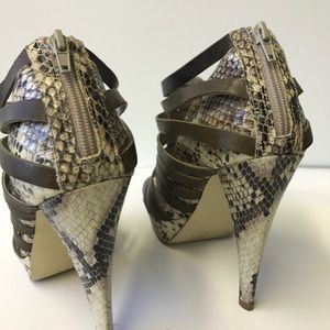 7 for All Man Kind Snakeskin Print Strappy Heels