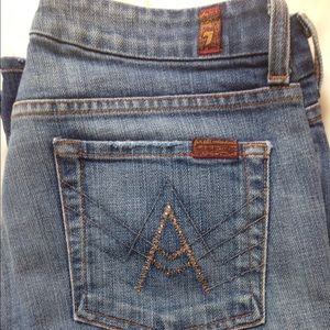 7 for All Mankind "A" pocket bootcut jeans, 28 waist 28 inseam. Style # u130055u, medium wash, like new condition.
