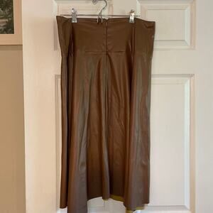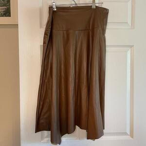 7 for All Mankind Asymmetrical Hem Faux leather Midi Skirt Tan Size Large