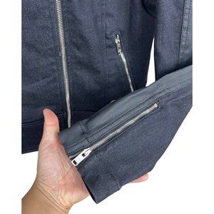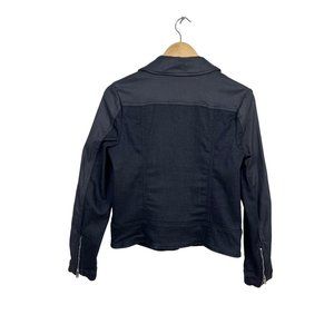 7 for All Mankind Black Denim Faux Leather Zip-up Moto Jacket size L