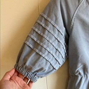 7 for All Mankind Blue Pintuck Puff Sleeve Open Back Bow V-Neck Mini Dress Sz S
