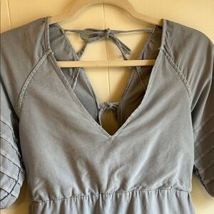 7 for All Mankind Blue Boho Babydoll Puff Sleeve Open Back Bow Mini Dress Sz S