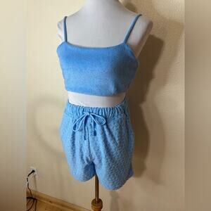 7 for All Mankind Blue Terry cloth crop top and high waisted shorts SET SMALL